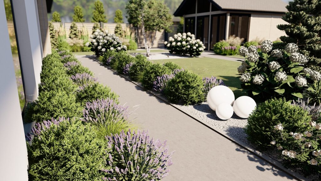 Jeśli marzysz o eleganckim i zapraszającym wejściu do swojego domu, postaw na gotowy projekt Rabata przy wejściu do domu. Rabata fioletowo-zielona I od Botanic Vision to doskonałe rozwiązanie, które pozwala szybko i bezproblemowo odmienić przestrzeń przed domem.