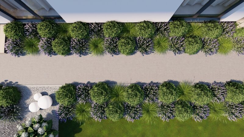 - Rozrysowany projekt techniczny – precyzyjne rozmieszczenie roślin dla najlepszego efektu wizualnego.