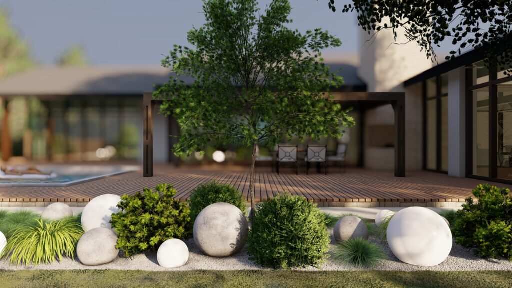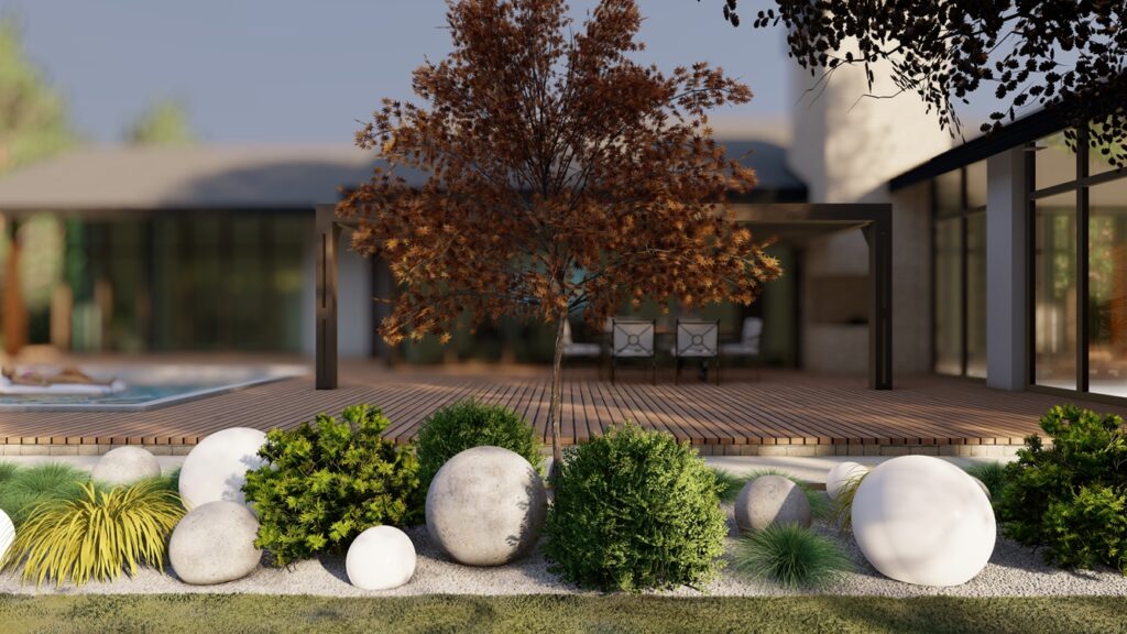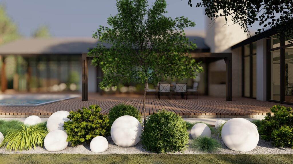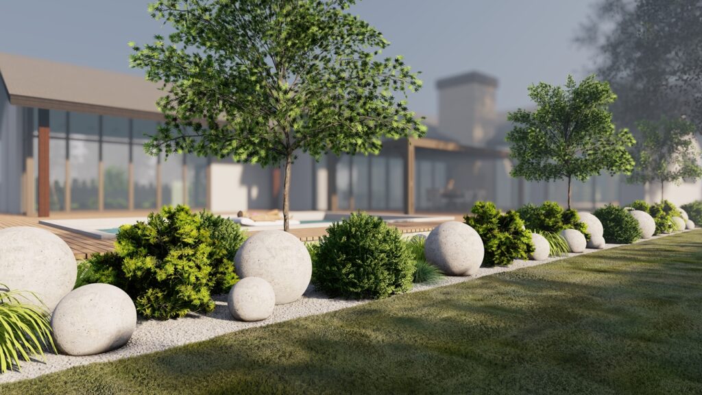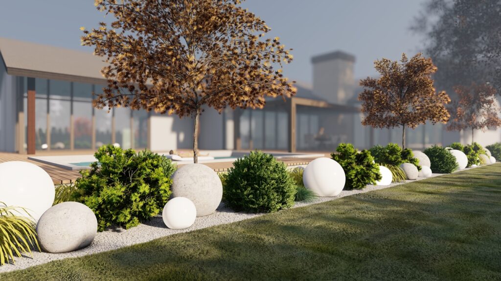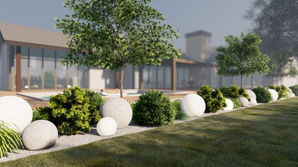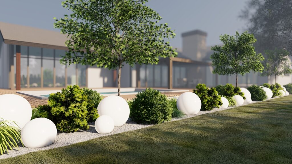 - W ogrodzie nowoczesnym lub minimalistycznym – jako elegancki i wyrafinowany element aranżacji.
