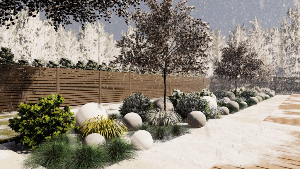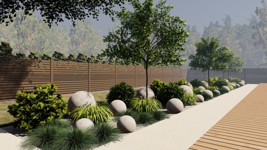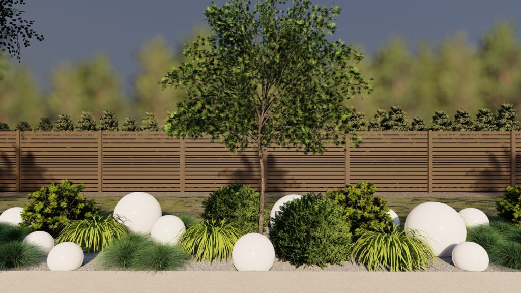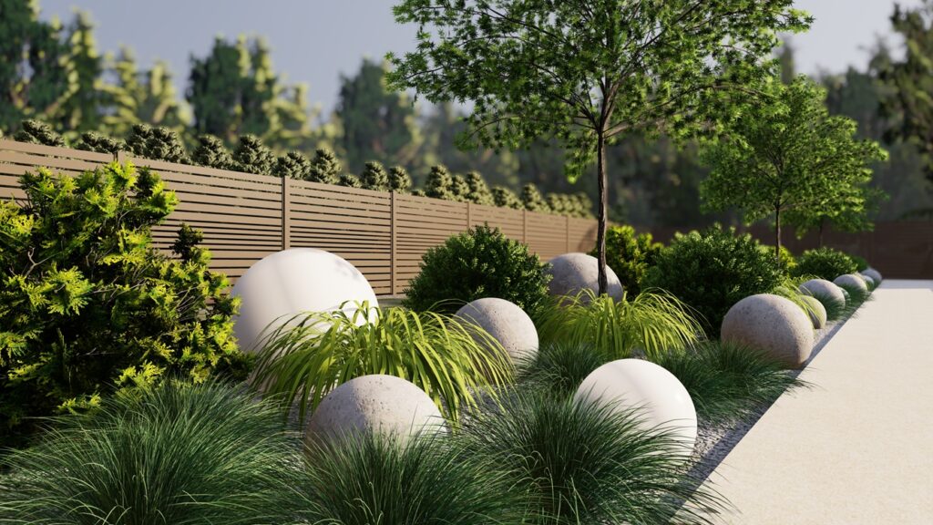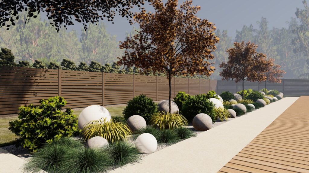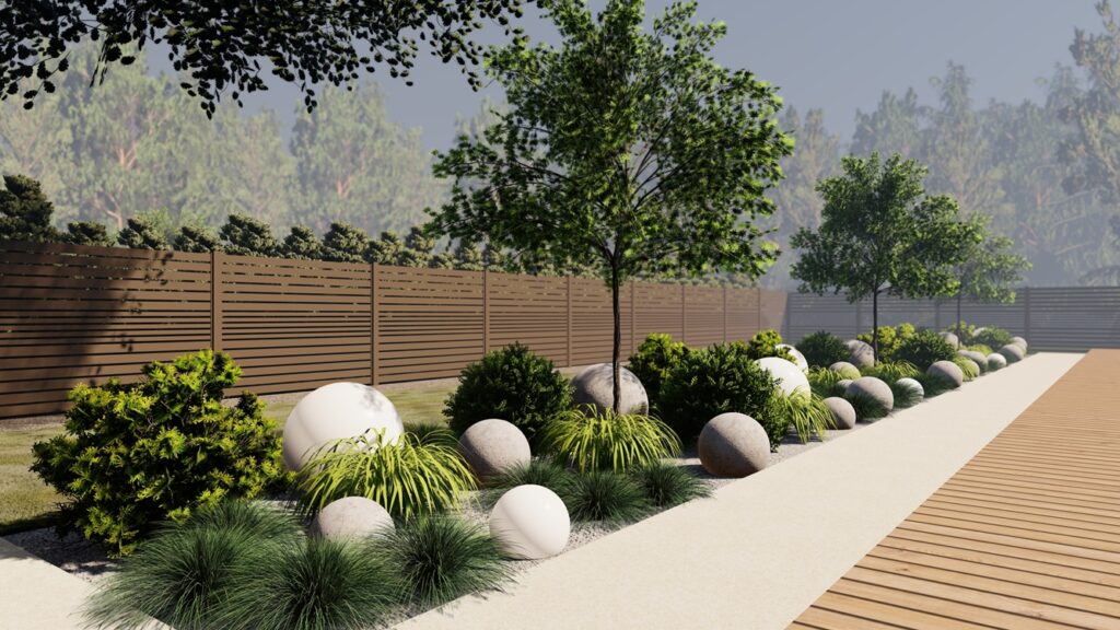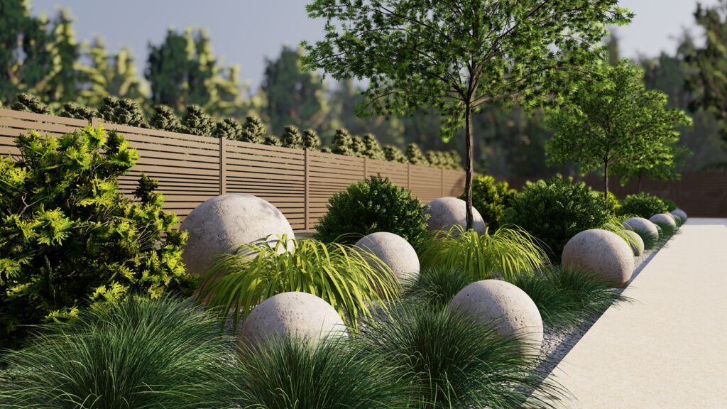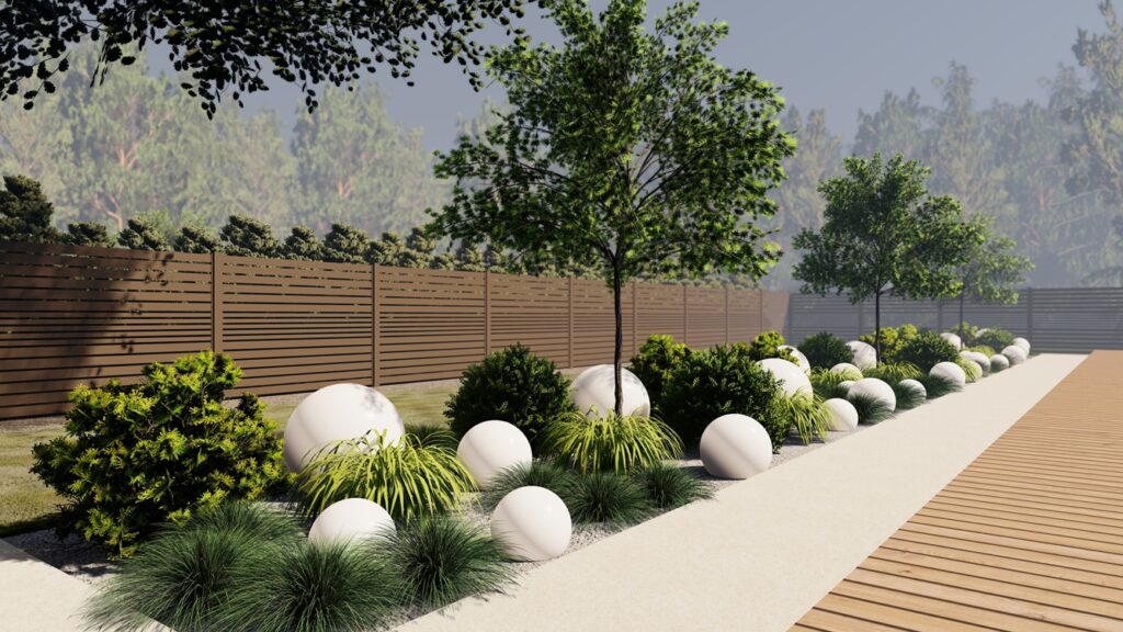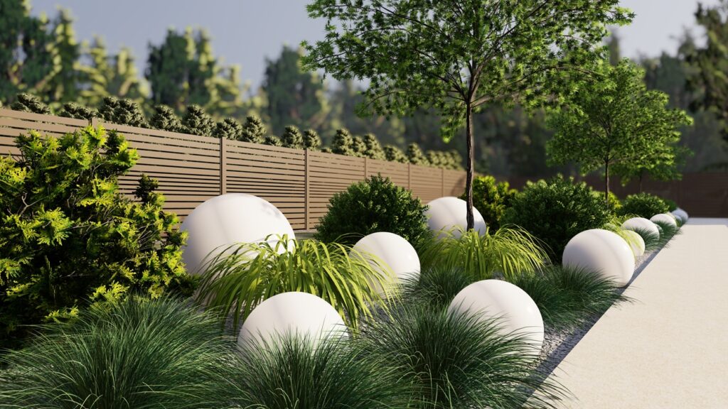 Jeśli szukasz wyjątkowego akcentu do swojego ogrodu, Rabata Unikalna to idealny wybór. Projekt łączy subtelne piękno zieleni i eleganckich traw z artystycznym wyrazem w postaci kul – betonowych, LED-owych lub mieszanych – które nadają kompozycji nowoczesnego charakteru. To harmonijne połączenie natury i designu stworzy w Twoim ogrodzie niepowtarzalną przestrzeń, która zachwyca o każdej porze roku.