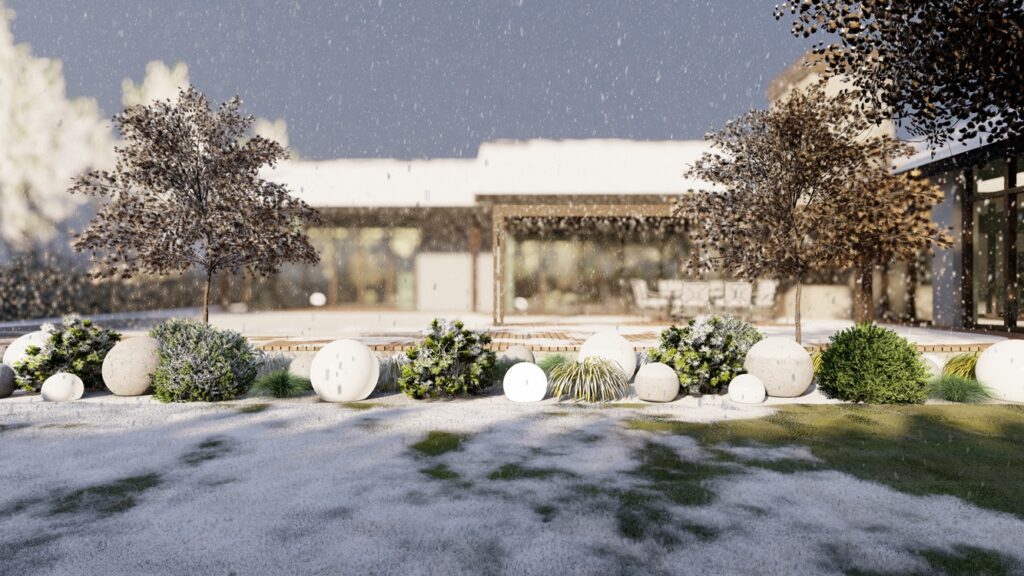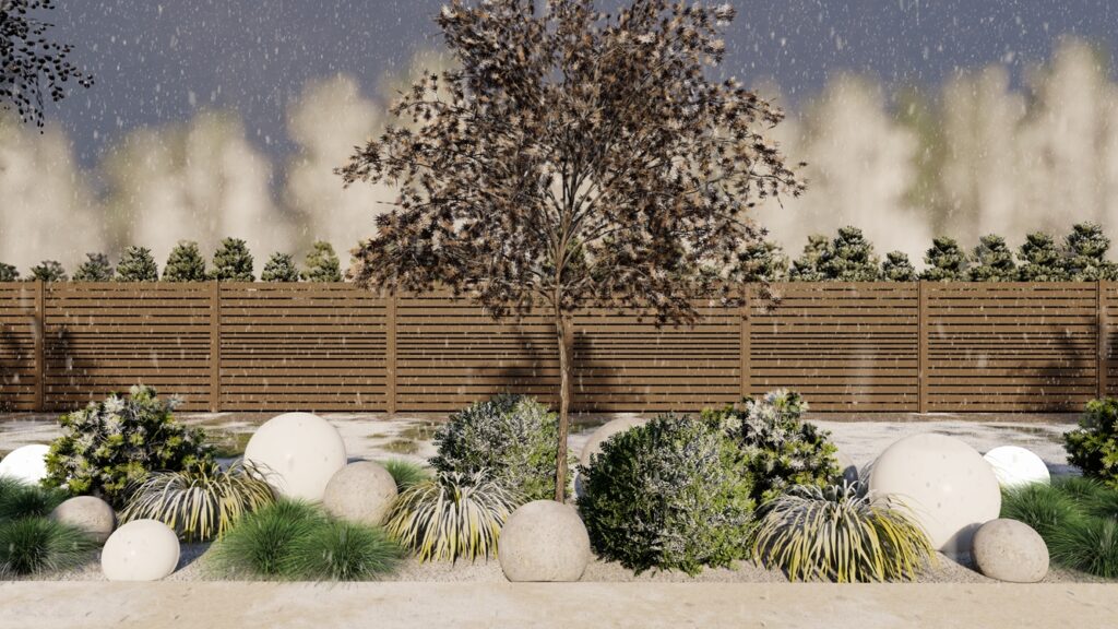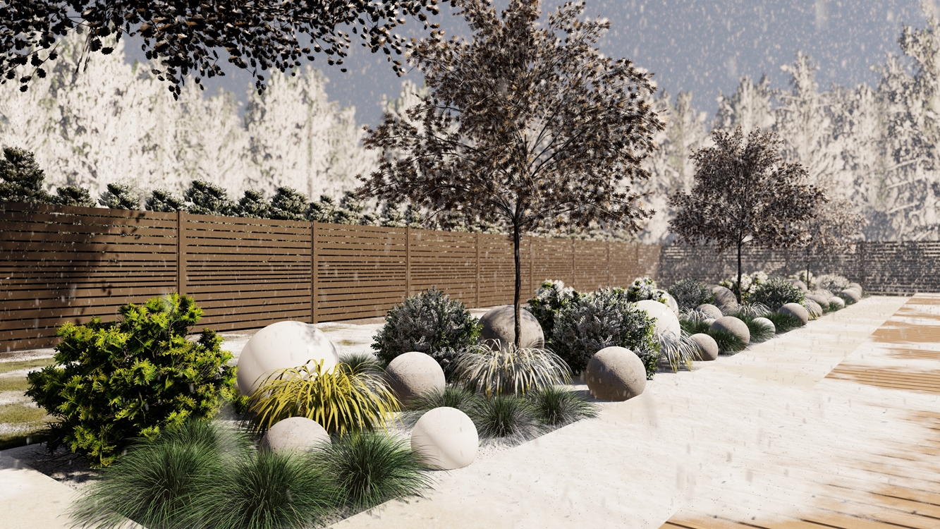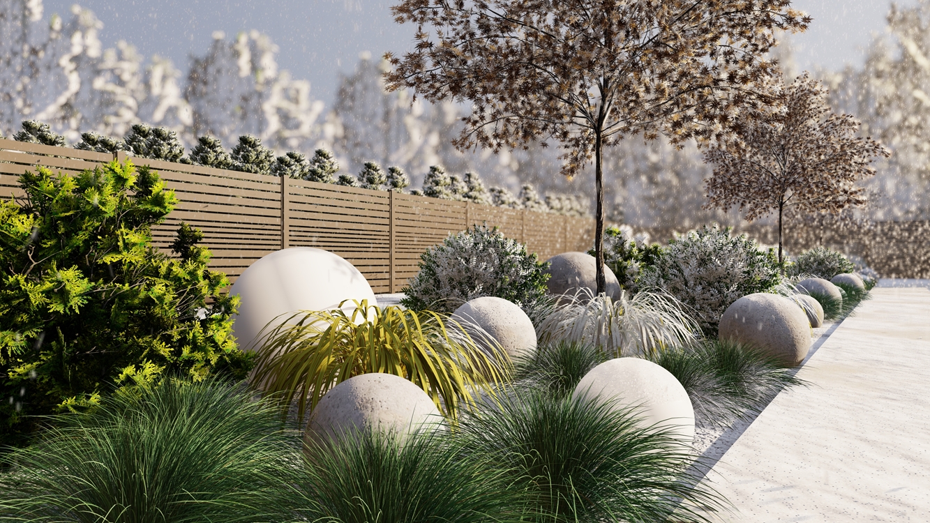 - Efekt całoroczny – Rabata zdobi ogród niezależnie od sezonu – piękne rośliny wieloletnie i dekoracyjne kule zachwycają przez cały rok.